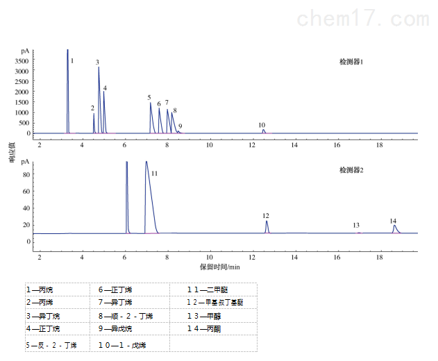 ———增加了含有含氧化合物液化石油气组成分析系统,采用配置了双阀双柱双检测器色谱分析系统通过一次进样完成液化石油气中二甲醚、 甲基叔丁基醚、 甲醇、 丙酮等含氧化合物和C1 ~ C5 烃类组分的全分析。